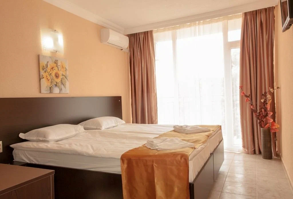 Питание: По системе "всё включено". Завтрак (07:30-10:00). Обед (12:00-14:00). Ужин (18:00-21:00). Есть вегетарианское меню. Тематический фуршет 1 раз в неделю. Горячие и холодные напитки: сэндвичи, пицца, выпечка, круассаны (14:30-17:00). Местные алкогольные напитки; местное разливное пиво, местные вина (красное и белое), болгарский бренди/ракия, виски, водка, джин, ром, коньяк, бренди, текила, мастика, ликеры (10:00-23:00). Развлечения и спорт: водная гимнастика, аэробика, дартс, дневные и вечерние развлечения, анимация для гостей, конкурсы, призы, танцы, DJ вечеринки, уроки танцев, караоке. Услуги для детей: детский клуб, открытая детская площадка, мини-диско. Уборка номеров ежедневно, смена полотенец каждые 3 дня, смена постельного белья каждые 7 дней. |