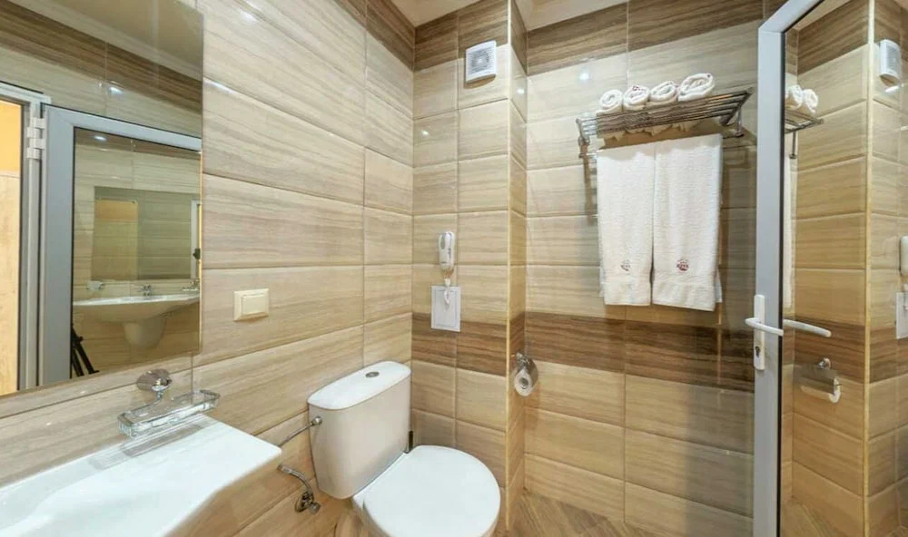 Номер: Кондиционер, WC (душ), TV-sat, мини-холодильник, телефон, фен, балкон. DBL - 2 односпальные кровати (можно сдвинуть). Макс. размещение: 2 взр. DBL 2+1: 2 односпальные кровати (можно сдвинуть) + 1 доп. кровать (кресло-кровать). Макс. размещение: 2 взр., 2 взр. + 1 ребенок или 3 взр. Номера находятся на первом этаже!. DBL 2+2: 2 односпальные кровати (можно сдвинуть) + 2 доп. кровати (кресло-кровати). Макс. размещение: 2 взр. + 2 реб или 3 взр. Studio: 4 односпальные кровати (можно соединить). Макс. размещение: 4 взр. |