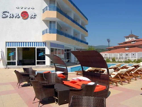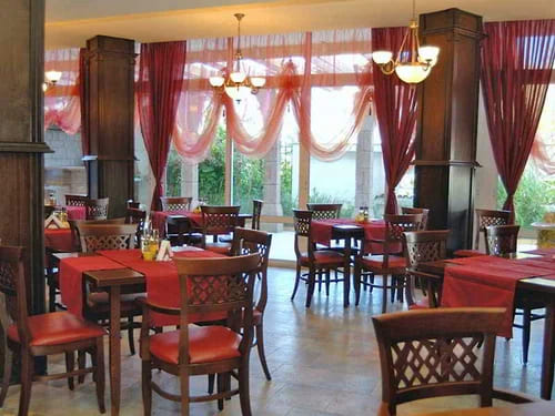 Питание: По системе "всё включено". Завтрак с 8:00-10:00, обед с 12:30-14:00, ужин с 18:30-20:00 в основном ресторане "шведский стол". Кофе, чай, мороженое, сладости с 16:00-17:00 в основном ресторане. Лобби-бар: безалкогольные напитки местного производства, разливное пиво и вино, кофе, чай (10:30-22:30), алкогольные напитки местного производства - водка, джин, мастика, мента, виски, вермут (18:30-20:00). Бар у бассейна: болгарские безалкогольные напитки, разливное пиво и вино (10:30-20:00), болгарские алкогольные напитки - водка, джин, мастика, мента, виски, вермут (18:30-20:00). |